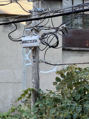 窓から外を眺めていると|ω・)木の電柱に何やら「ツルマイ」と書かれた謎のボックス・・・。
