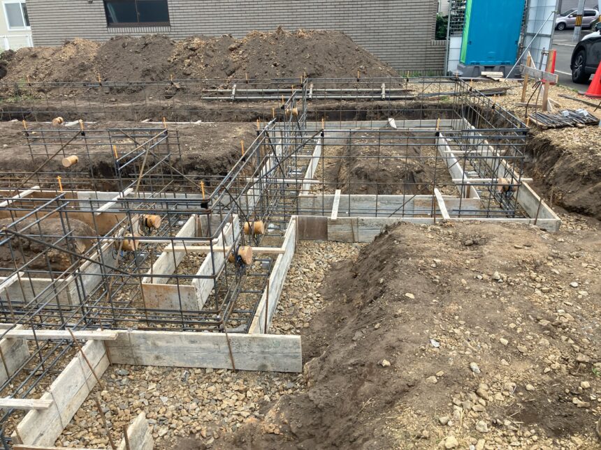 基礎の配筋作業が完了し、